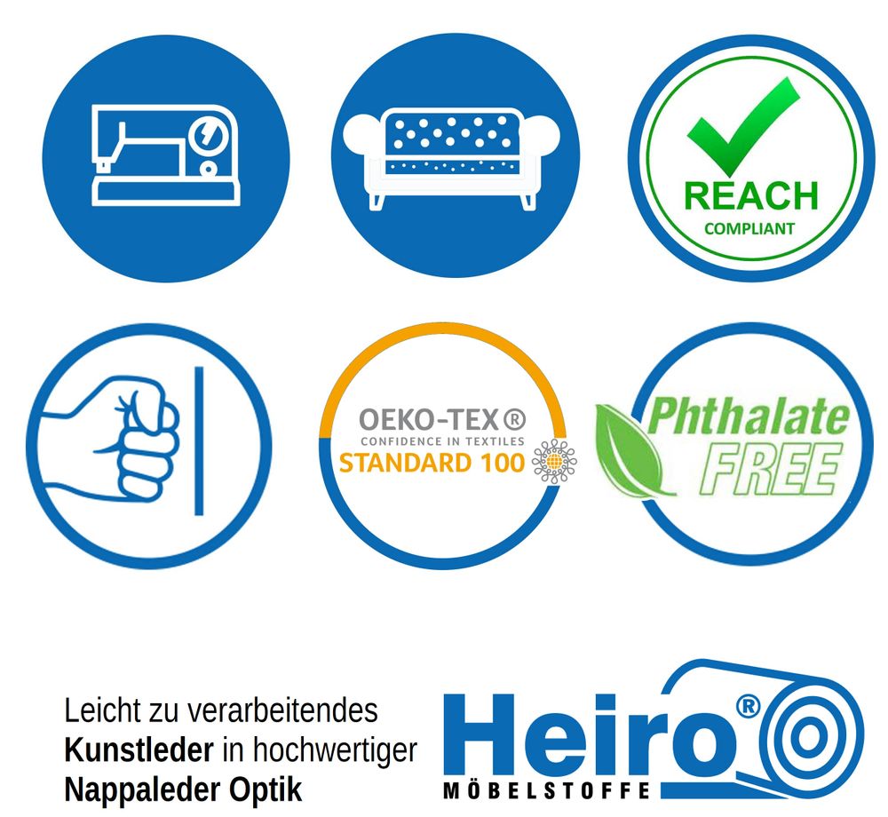 Problemlose Verarbeitung nach üblichen Verfahren wie Nähen, Heften, Kleben oder Nageln. Abriebfest und Reißfest. Langlebig und Pflegeleicht. Zu reinigen mit warmen Wasser und einem Microfaser Tuch. Nicht reinigen mit chemischen Reinigungsmitteln. Bitte beachten Sie, dass Anfärbungen durch Jeans oder andere Textilien von jeglicher Herstellergarantie ausgenommen sind.