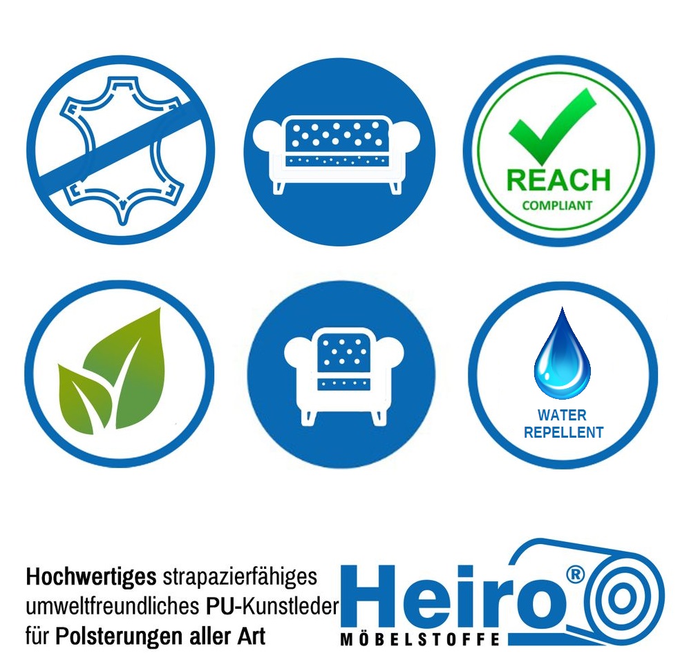 Problemlose Verarbeitung nach üblichen Verfahren wie Nähen, Heften, Kleben oder Nageln. Abriebfest und Reißfest. Langlebig und Pflegeleicht. Zu reinigen mit einem feuchten Baumwoll-Tuch. Nicht reinigen mit chemischen Reinigungsmitteln. Bitte beachten Sie, dass Anfärbungen durch Jeans oder andere Textilien von jeglicher Herstellergarantie ausgenommen sind.