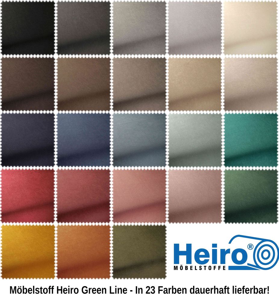 Heiro Green Line bietet eine große Farbauswahl und ist natürlich in allen anderen Bereichen einsetzbar, wie für den Polsterbezug von Stühlen, Sofas, Kissen, Eckbänken, Polstermöbeln, Wohnwagen und vielem mehr.
