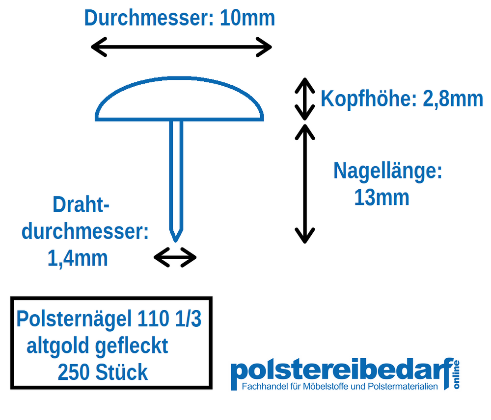 Polsternägel altgold gefleckt 110 1/3 250 Stück ⌀ 10mm