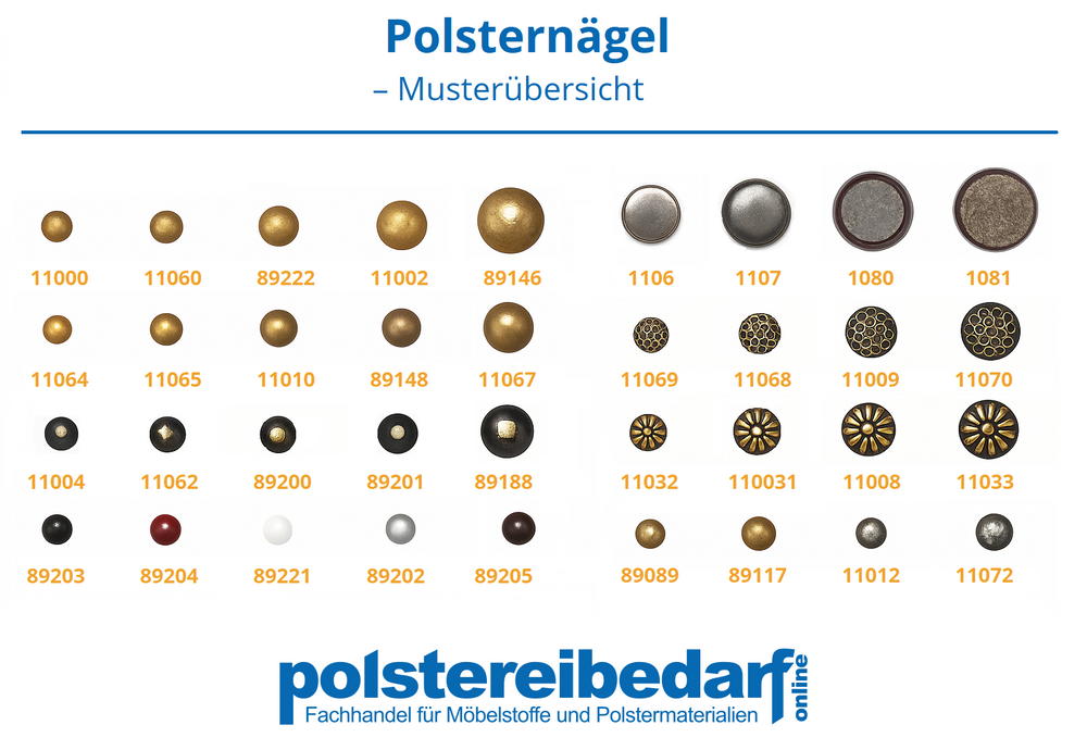 Verleihen Sie Ihren Polstermöbeln einen stilvollen Akzent: Diese hochwertigen Polsternägel eignen sich ideal zur dekorativen Befestigung von Stoffen, Gimpen, Borten oder Bändern. Ob klassisch oder modern – mit ihrer edlen Optik setzen sie gezielt Akzente und runden jedes Möbelstück geschmackvoll ab.