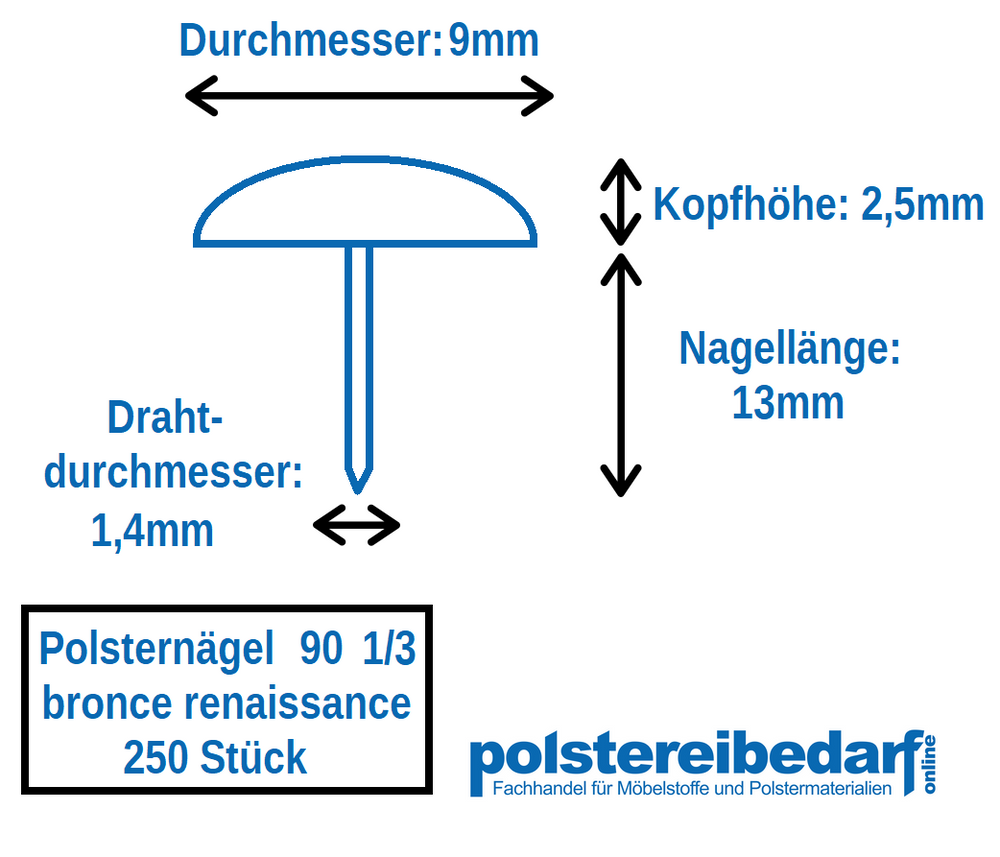 Polsternägel bronce renaissance 90 1/3 250 Stück ⌀ 9mm