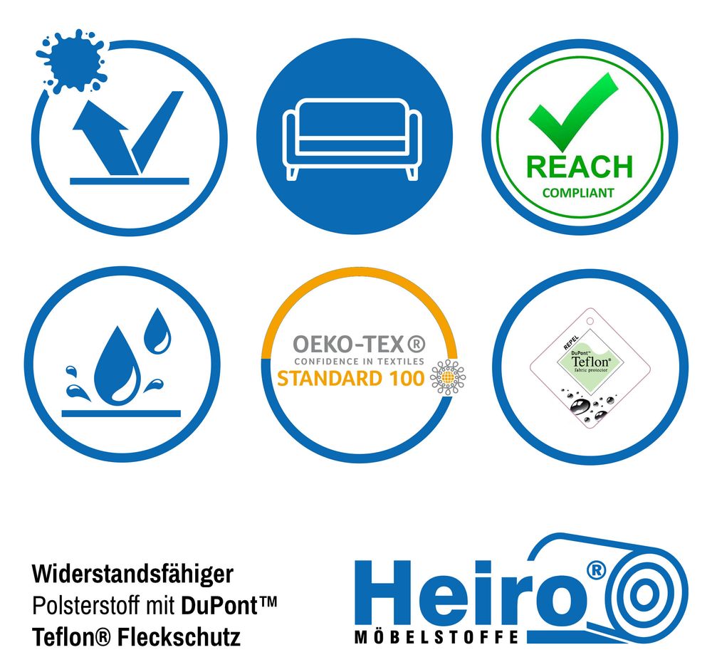 Wir bemühen uns um farbgetreue Darstellung der Möbelstoff und Kunstleder Fotos, aber wir senden Ihnen auch gerne kostenlos bis zu 3 Farb- und Probemuster in der Größe 4,5 cm x 7 cm zu. Hier kommen Sie zu unserem Musterservice.